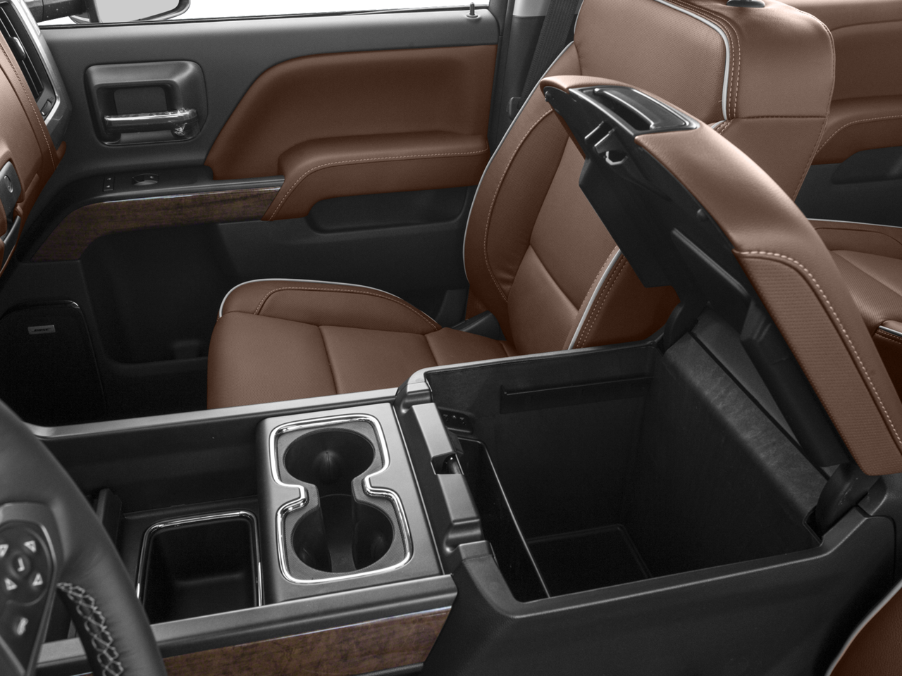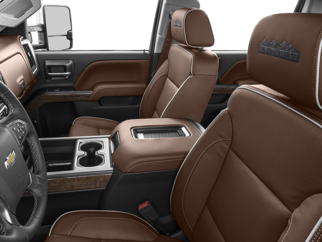 - High Country includes High Country brushed metal sill plate, (AN3) front full-feature leather-appointed bucket seats, (KQV) heated and vented seats, (B58) color-keyed carpeted floor mats, (D07) center floor console, (UQA) Bose sound system, (RQ9) 20" chromed aluminum wheels, (QFC) LT265/60R20E all-terrain, blackwall tires, (UD5) Front and Rear Park Assist, (VB5) body-color front bumper, (VT5) body-color rear bumper, unique chrome grille, (V76) Black recovery hooks, (CTD) cargo tie downs, dealer-installed, (Y65) Driver Alert Package (which includes (UFL) Lane Departure Warning, (UEU) Forward Collision Alert, safety alert seat), (UVD) heated steering wheel, (JF4) Power Adjustable Pedals and (JL1) trailer brake controller