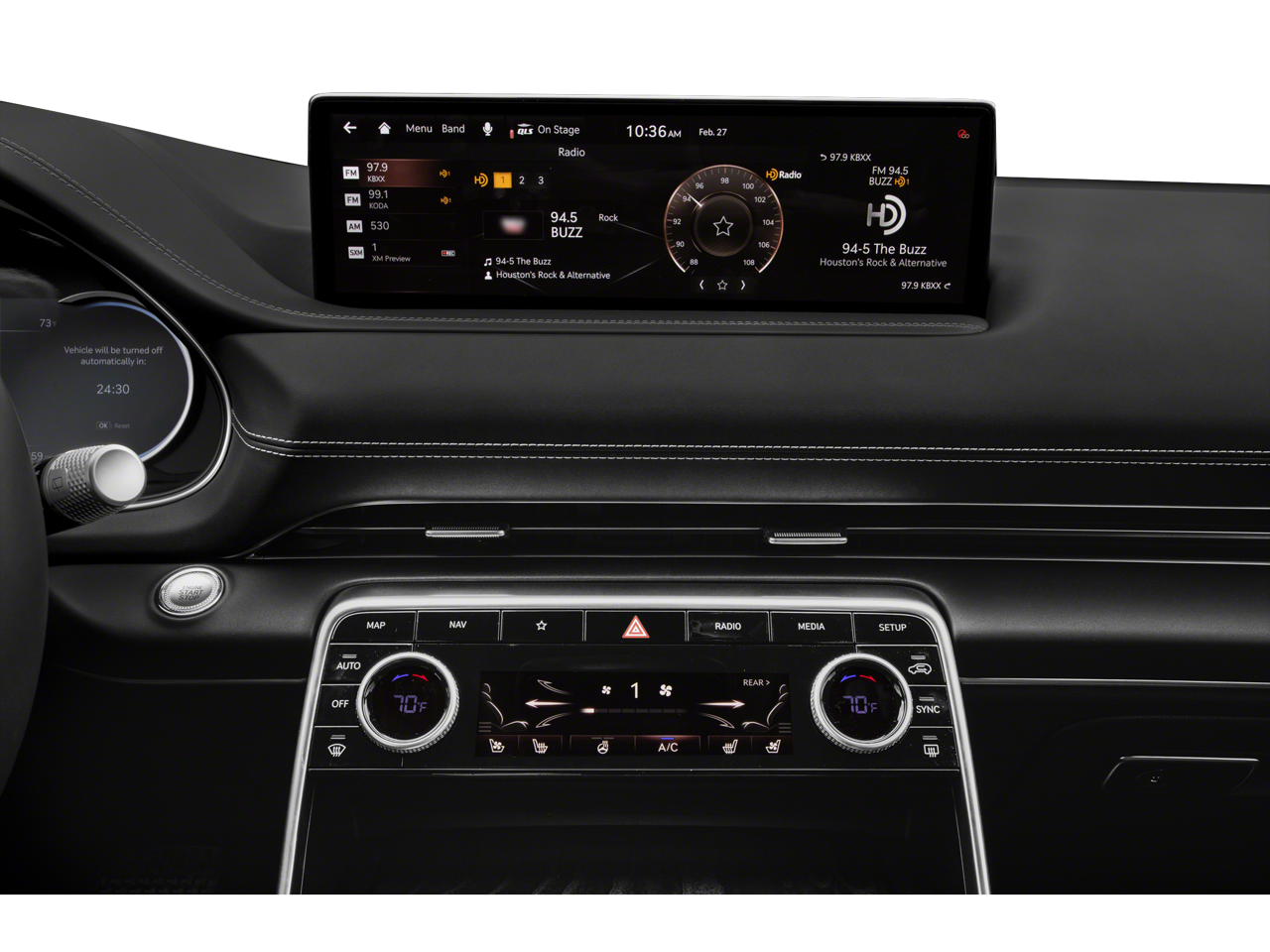 - Radio: AM/FM/SiriusXM/HD Lexicon Prem Audio System -inc: 21 speakers, 14-channel digital external amplifier, Quantum Logic surround sound,integrated navigation, 14.5" HD LCD screen, Apple Carplay and Android Auto, Bluetooth® hands-free phone system w/audio streaming, steering wheel controls, 2 front and 2 rear USB ports, 2 12v power outlets, front wireless device charger and Genesis Connected Services