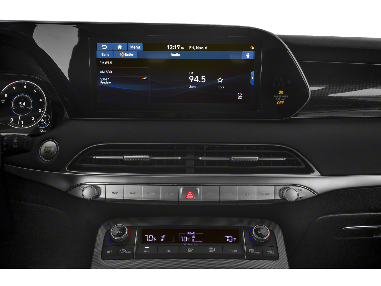 - Radio: AM/FM/MP3 Premium Audio System -inc: 630-Watts, 12-speaker harman/kardon premium audio system, 10.25" color touchscreen, onboard navigation w/traffic flow including incident data via HD Radio (HERE), QuantumLogic surround, Clari-Fi music restoration technology, Android Auto, Apple CarPlay, HD Radio, SiriusXM radio, driver-talk in-car intercom, rear seat quiet mode, multiple device connection, USB and auxiliary input jacks, wireless device charging, Bluetooth® hands-free w/wireless audio streaming, Blue Link connected car system and steering wheel audio controls