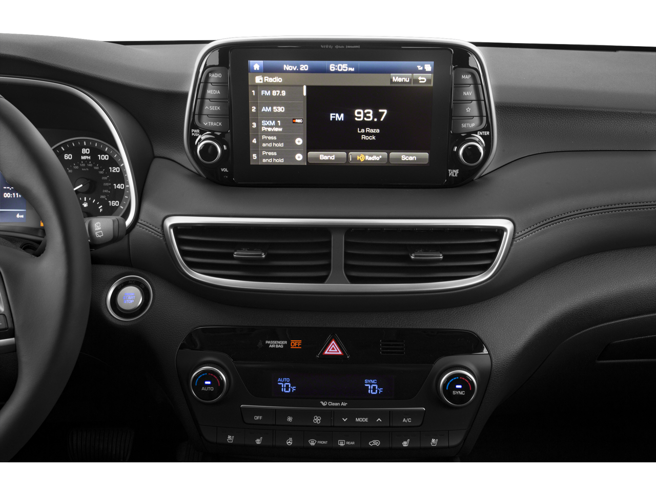 - Radio: Infinity Audio System w/Navigation -inc: 315 Watts, Clari-Fi music restoration technology, external amplifier, 8 speakers, 8" color touchscreen display, Android Auto and Apple CarPlay, USB/AUX outlets, Bluetooth® hands-free phone system, HD Radio, VR and Blue Link connected car system and wireless device charging