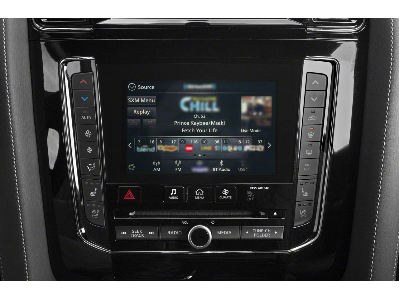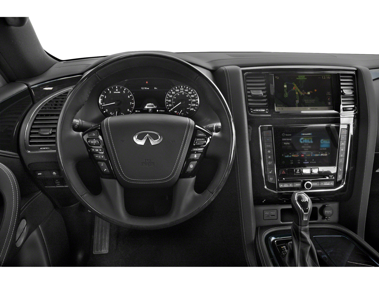 - Radio: Bose Performance Audio System w/17 Speakers -inc: speed-sensitive volume control, INFINITI InTouch 12.3" interactive display, INFINITI InTouch services (1-year premium trial and 5-year select trial), INFINITI navigation w/lane guidance and 3D building graphics, MapCare w/over-the-air update compatibility (5-year trial period), premium traffic w/live traffic information (5-year trial period), TomTom weather (5-year trial period), HD radio technology, Apple CarPlay w/wireless Apple CarPlay integration, Android Auto, Siri Eyes Free, Wi-Fi hotspot (30-day or 1GB trial, whichever comes first), Alexa built-in, SiriusXM radio (3-month trial period), SiriusXM Traffic (3-month trial period), SiriusXM Travel Link (3-month trial period): weather, fuel prices, stock prices, sports scores, movie listings and parking, over-the-air head unit update capability (5-year trial period), INFINITI Voice recognition for audio, navigation, Bluetooth® and vehicle information, Bluetooth® hands-free phone system and streaming audio, hands-free text messaging assistant, 2x USB ports for compatible devices for audio streaming and wireless phone charger