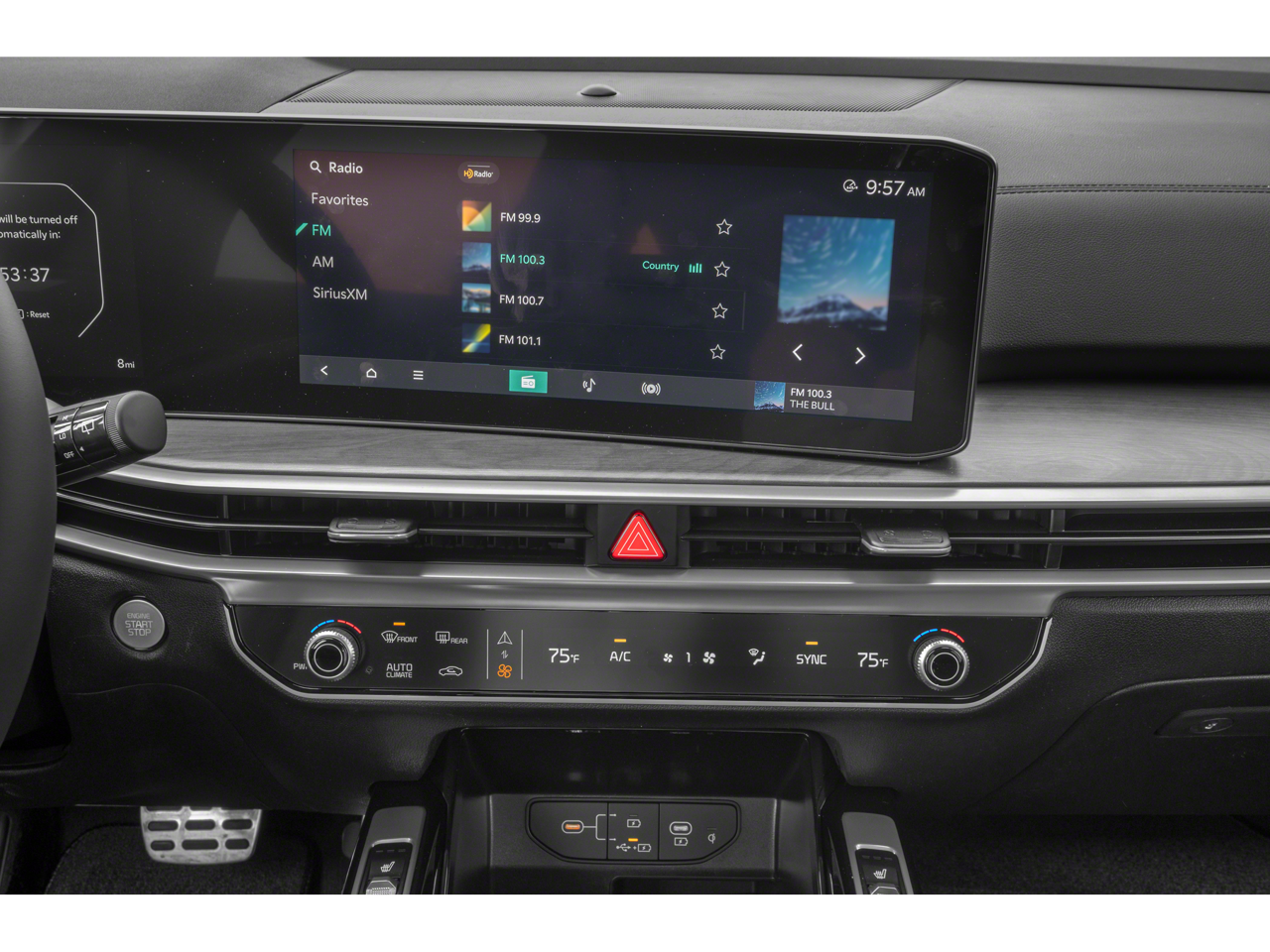 - Radio: AM/FM Audio System -inc: 12.3"curved display, navigation, HD Radio, Bluetooth® w/audio remote control, wireless Android Auto and Apple CarPlay, voice recognition, Sirius XM, Kia Connect, Wi-Fi hot spot, Over-The-Air Updates (OTA), 6 speakers and USB