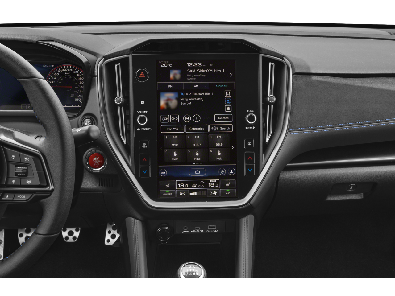 - Radio: Subaru 11.6" Multimedia System w/Navigation -inc: multi-touch gesture high resolution display screen, voice activated controls, voice activated navigation, Bluetooth® audio streaming connectivity, Bluetooth® hands-free phone connectivity, Bluetooth® hands-free SMS text messaging connectivity (applicable w/compatible cell phone), Near Field Communication (NFC), TomTom navigation software w/what3words, iPod control capability, rear-vision camera display, SiriusXM All Access radio (4 months free trial/subscription required after), SiriusXM w/360L (4 months free platinum trial included/subscription required after), SiriusXM Traffic (3 years free trial/subscription required after), SiriusXM Travel Link (3 years free trial/subscription required after), smartphone integration: Android Auto w/full screen view and wireless connection, Apple CarPlay w/full screen view and wireless connection, My Subaru cloud applications, USB and Over The Air (OTA) audio system update, 504 watt harman/kardon speaker system w/11 speakers and roof mounted audio, satellite and connected services antenna