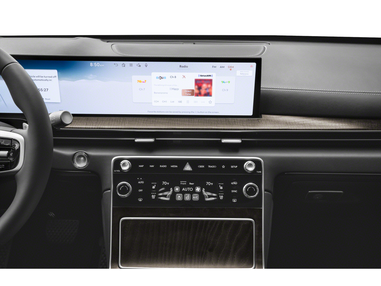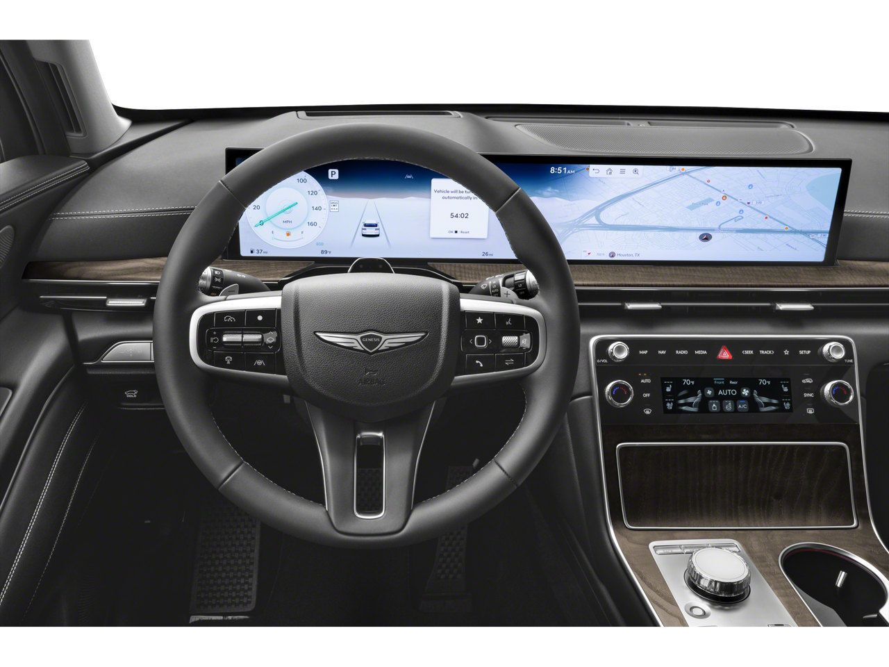 - Radio: AM/FM/HD Bang & Olufsen Sound System -inc: 1400 watts, 18 speakers, 14 channel amplifier, 27" integrated OLED instrument cluster and navigation system, SiriusXM Radio w/90-day subscription (not available in AK or HI), cloud connected platform (cloud profiles, connected routing, dynamic voice recognition, OTA updates), wireless Apple CarPlay, wireless Android Auto, Bluetooth® hands-free phone system w/audio streaming, wireless phone charger, Wi-Fi hotspot, steering wheel controls, USB and Genesis Connected Services
